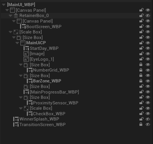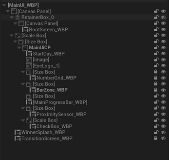 TerminalActor), while visual implementation utilizes Blueprint/UMG for rapid iteration. - Scalable UI Systems: The "Refining Grid" and "Progress Arrays" are generated procedurally. This allows for infinite scaling of difficulty (more files, larger grids) without modifying the widget hierarchy manually.